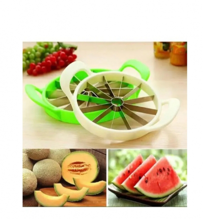 Резак для арбузов представляет собой пластиковый корпус с 12 ножами из нержавейки и поможет за считанные минуты красиво нарезать вкусный и сочный плод.