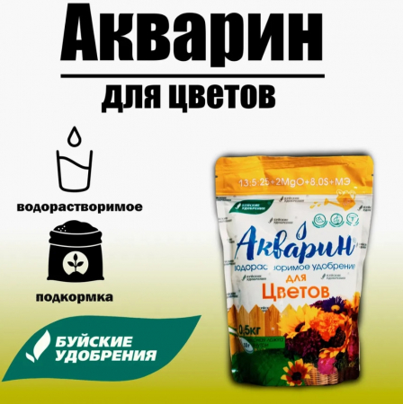 Удобрение с оптимальным набором макро- и микроэлементов для питания растений через полив и листовые подкормки. Микроэлементы в его составе содержатся в виде сложных органических солей – хелатов. Для растений потребление микроэлементов в такой форме наиболее благоприятно. Они быстрее усваиваются, не закрепляются в почве, что позволяет сократить дозу внесения и обеспечить видимый эффект. Подкормки проводят раствором удобрения или рано утром, или вечером, или в пасмурную погоду. Акварин можно использовать как самостоятельно, так и совместно со средствами защиты растений.Питательным раствором проводят корневые или листовые подкормка методом опрыскивания в течение всей вегетации. Возможно применение со средствами защиты растений. За сезон проводится до 5 подкормок, последняя подкормка – не позднее, чем за 2 недели до сбора урожая.