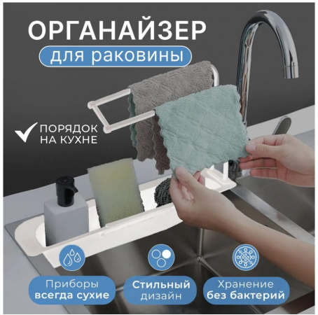 Съёмный кронштейн станет отличным приспособлением для полотенец маленького размера, губок для мытья посуды, мыла, моющего средства и остальных предметов, так необходимых нам возле кухонной раковины. Также такая важная деталь поможет соблюдать