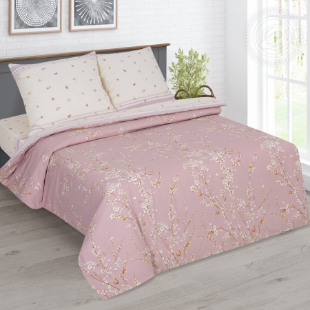 «Сакура» - традиционные японские мотивы в нежно-розовом. Нюдовые оттенки в идеальной гармонии с утонченной композицией в виде веточек сакуры – символом любви, женской красоты и обновления. Поплин с цветочным принтом олицетворяет весенний пейзаж с нотками экзотики. Настоящий японский сад в Вашей спальне.
