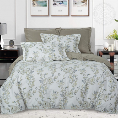 «Селина» – утонченный и гармоничный дизайн с цветами. Он выполнен в натуральных, природных оттенках и украшен легкой композицией с растительным орнаментом. Постельное белье из мако сатина – настоящая сказка в интерьере!
