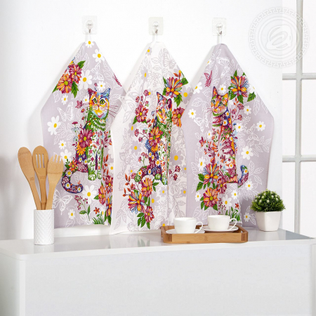 «Чудесный день» – образ весны на Вашей кухне. Практичный и стильный набор полотенец рогожка поражает гармоничным сочетанием нежных и ярких оттенков и изящными рисунками в виде очаровательных кошек.