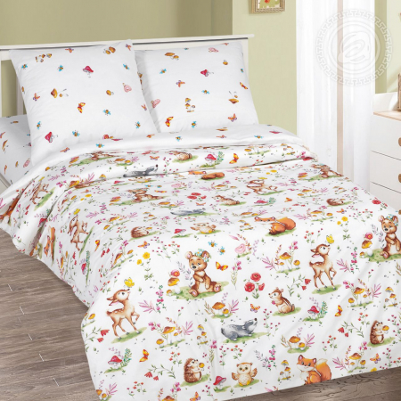 Детский комплект постельного белья от того и называется детским, что выполнен в соответствующем стиле. Маленькие зверята, цветочки, грибочки, бабочки и пчелки – вот из чего состоит новый рисунок. Каждому ребенку будет интересно найти себе маленького лесного друга, чтобы поиграть с ним перед сном. Высокое качество ткани и мастерство художника соединились воедино, чтобы показать, насколько постельное белье может быть приятным и комфортным. «Лесные друзья» - это не просто комплект, это любимый атрибут детской комнаты.