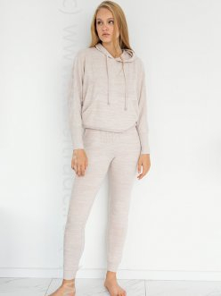Женский костюм для дома и отдыха. Уютный и мягкий комплект, состоящий из брючек-джоггеров и худи с карманом-кенгуру. Трикотаж с лёгким ворсом приятно окутывает тело. Расслабленный фасон худи с рукавами «летучая мышь» способствует релаксации и подходит любой фигуре. Широкая резинка по низу на манжетах рукавов и брюк, на поясе, обеспечивает комфортную посадку. Металлические блестящие эглеты украшают шнурок в кулиске капюшона. У брючек есть боковые карманы.