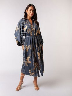 Халат-Кимоно выполнен в традиционном японском стиле с широкими, струящимися, длинными рукавами фурисодэ.