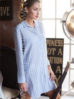 Туника домашняя женская Миа-Миа рубашечного кроя, выполненна из хлопковой ткани. Модель средней длины прямого силуэта. Туника с отложным воротником стойка. Рукав длинный на манжете. Модель с кокеткой на спине и накладным карманом на груди.