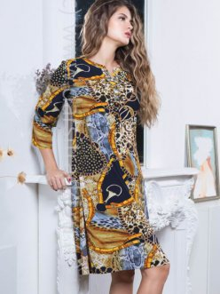 Туника домашняя женская Миа-Миа выполненая из принтованной вискозы. Модель свободного силуэта длиной ниже колена. Рукав прямой длинный. Горловина полукруглой формы обработана обтачкой. По полочке планка застежка на пуговицах до талии. По правому боковому шву разрез.