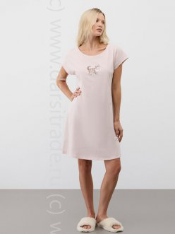 Сорочка с круглым вырезом и коротким рукавом. Выполнена из набивного трикотажа супрем с нежным рисунком.