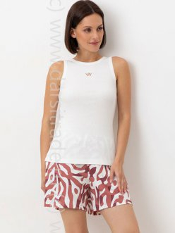 Комплект для комфортного сна из трикотажного полотна с набивным рисунком. В составе 100% натуральный хлопок. Майка из трикотажа в рубчик. Шорты с мягким поясом на резинке удобно садятся по фигуре. Гладкий материал приятен к телу, не теряет форму и позволяет коже дышать.