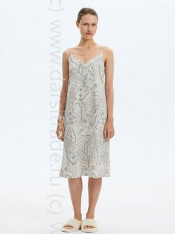 Сорочка на узких бретелях. Выполнена из набивного трикотажа супрем с нежным рисунком.