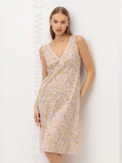 Комфортная сорочка на лямках из набивного трикотажа из 100% хлопка. V-образый вырез отделан кружевом. Гипоаллергенные красители.