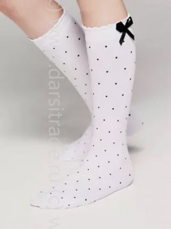 Плотные гольфы с декоративным бантом и рисунком «точки», вывязанным из черной полиамидной нити, дополнят повседневный и нарядный гардероб маленькой модницы.