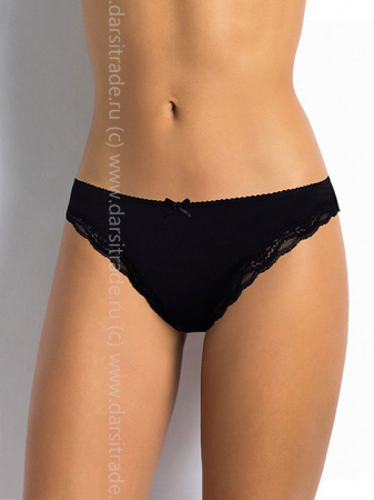 Трусики-бразильяна из мягкого хлопка, декорированные широкой кружевной тесьмой.