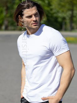 Мужская базовая футболка из хлопкового трикотажа премиального качества – маст хэв каждого мужского гардероба. Универсальная модель с короткими рукавами и округлым вырезом горловины сочетается практически со всеми вещами. Лаконичная белая или черная футболка имеет маленькую нашивку, указывающую на принадлежность к бренду, но эта незначительная деталь никак не влияет на общий классический образ модели.