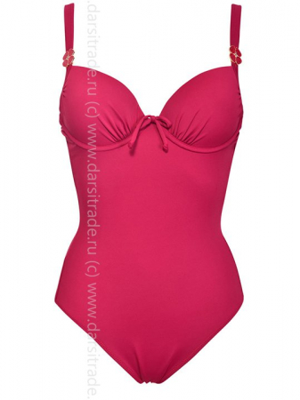 Совместный купальник с формованными чашками (без пуш-ап) на косточках. Передняя часть купальника дублирована укрепленной сеткой обеспечивающей легкий утягивающий эффект и поддержку. Регулируемые бретели, 2 варианта завязывания.