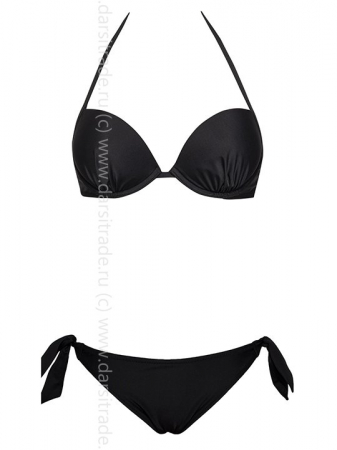 Раздельный купальник: бюстгальтер с формованной чашкой пуш-ап на косточках. Бретели с двойным вариантом завязывания. Застежка- завязка на спинке. Трусики-бразильяна на завязках.