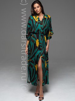 Длинная рубашка Mia-Amore свободного силуэта с широким рукавом до линии локтя. Рубашка выполнена из принтованного натурального материала. По низу боковых швов расположены разрезы для свободы движения. По бокам обработаны карманы. Линию талии можно подчеркнуть за счет стильного узкого пояса с кистями, который идет в комплекте.