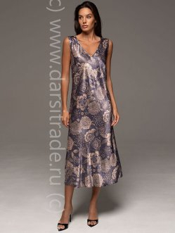 Туника Mia-Amore свободного кроя длиной до колен с цельнокроеными укороченными рукавами выполнена из принтованного смесового шелка. Округлый вырез горловины и низ рукавом обработаны обтачками из принтованного атласа. Туника комплектуется поясом, в боковых швах обработаны карманы.