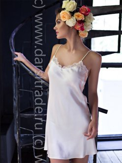 Сорочка на тонких регулируемых бретелях, декорирована кружевом по лифу.