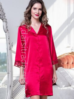 Короткий халат Mia-Amore на пуговицах с рукавом ?, выполнен из однотонного искусственного шелка. Низ рукавов украшен ажурной вышивкой на сетке. В боковых швах расположены карманы. Линию талии можно подчеркнуть за счет пояса, который идет в комплекте.