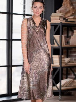 Длинная сорочка Mia-Amore на широких бретелях, выполнена из смесового шелка с купонным принтом. Линию выреза подчеркивает тонкий золотистый кант. Центр украшает двухцветный атласный бантик.