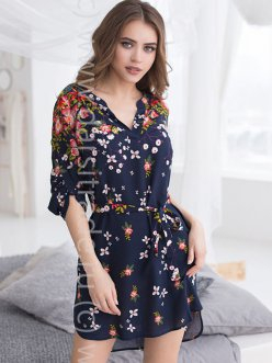 Туника домашняя женская Mia-Mia. выполненная из принтованной яркой вискозы. Модель на поясе свободного силуэта с длинным прямым рукавом. Фигурный вырез горловины с обтачкой из принтованной вискозы. В боковых швах изделия карманы.