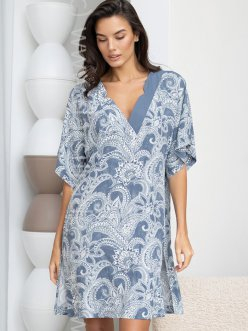 Короткая туника Mia-Amore свободного силуэта с широким рукавом. Изделие выполнено из принтованной тканой вискозы. В боковых швах расположены карманы. По низу изделия обработаны разрезы для большей свободы движения. Линию талии можно подчеркнуть за счет пояса, который идет в комплекте.