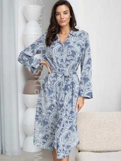 Удлиненная рубашка Mia-Amore с рукавом 3/4 и фигурной линией низа. Изделие выполнено из двух цветовых сочетаний тканой вискозы: принтованной и однотонной. В боковых швах расположены карманы. Линию талии можно подчеркнуть за счет пояса, который идет в комплекте.