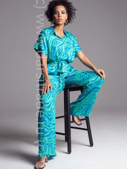 Комплект рубашка и брюки Mia-Amore выполнен из принтованного вискозного полотна. Удлинённая рубашка на пуговицах с короткими цельнокроенными рукавами, рубашечным воротником и разрезами по бокам. Низ рукавов рубашки оформлен узкой манжетой, по талии регулируется съемным поясом. Брюки свободного силуэта с поясом на резинке и боковыми карманами.
