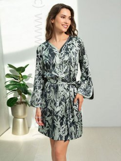 Короткая туника Mia-Amore свободного силуэта с длинным рукавом. Изделие выполнено из принтованного искусственного шелка с однотонной отделкой. По бокам расположены карманы. По низу боковых швов обработаны разрезы для свободы движения. Линию талии можно подчеркнуть за счет пояса, который идет в комплекте.