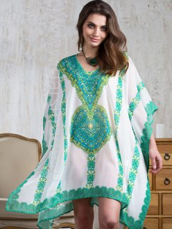 Туника в форме квадрата с V-образным вырезом горловины и с скрепляющей строчкой по боковым швам.