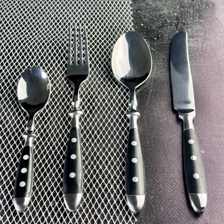 Столовые приборы изготовлены из высококачественной нержавеющей стали, устойчивы к ржавчине, прочны и долговечены