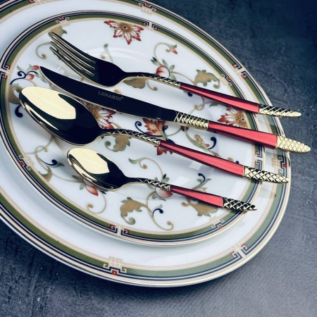 Столовые приборы изготовлены из высококачественной нержавеющей стали, устойчивы к ржавчине, прочны и долговечены, ручка покрыта декоративной эмалью