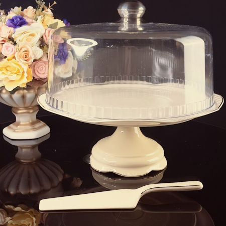 205-566 Тортовница 33х30см на ножке с крышкой и лопаткой МИРАЖ в под.уп.(х4)Фарфор (арт. 205-566)