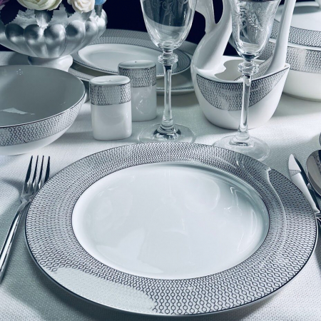 145-557 Набор из 6 тарелок 27см СЕВИЛЬЯ СЕРЕБРО в под.уп.(х5)Костяной фарфор (арт. 145-557)