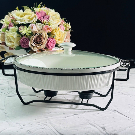 142-106 Сервировочный овальный мармит 37х26х12см на подставке в под.уп.(х4)Фарфор (арт. 142-106)