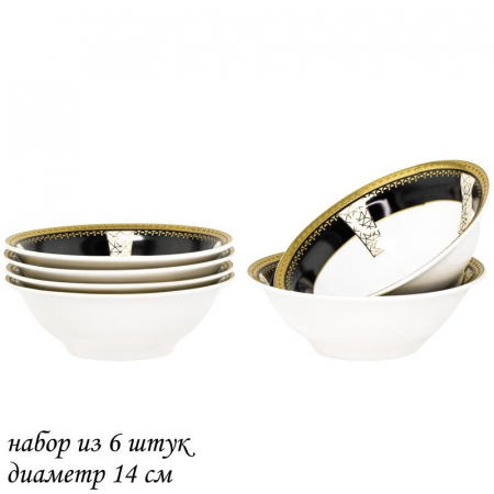 Коллекция посуды из фарфора Black Baccara выполнена в двух вариантах исполнения, которые прекрасно сочетаются друг с другом. Одни предметы только с золотым декором в виде паутинки, другие расписаны в черно золотой гамма. Все предметы имеют тонкое обрамление золотого канта.