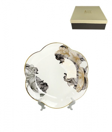Коллекция посуды МИЛЛЕНИУМ выполнена из фарфора, Оригинальная дизайнерская форма в виде распустившегося цветка, с тонким двухцветным цветочным декором в золоте и в серебре. Коллекция состоит из сервизов и отдельных предметов.