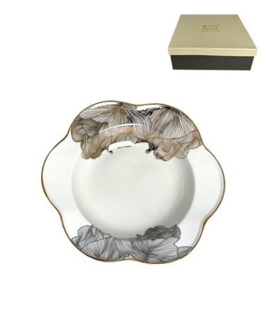 Коллекция посуды МИЛЛЕНИУМ выполнена из фарфора, Оригинальная дизайнерская форма в виде распустившегося цветка, с тонким двухцветным цветочным декором в золоте и в серебре. Коллекция состоит из сервизов и отдельных предметов.