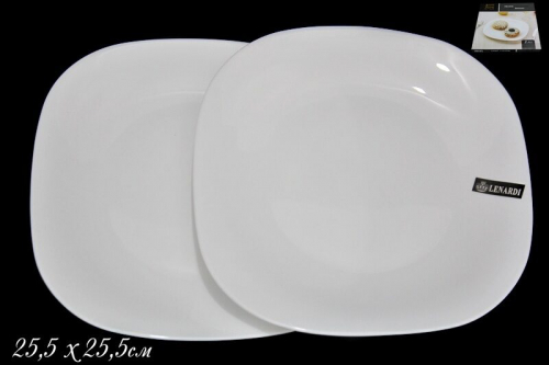115-084 Набор из 2х квадратных тарелок 25,5см WHITE в под.уп.(х18)Опаловое стекло (арт. 115-084)