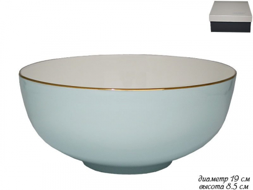 Салатник 19 см, высота 6,5 см, серия BLUE: высококачественный фарфор, золотая обводка, элегантный небесно голубой декор, изящные формы