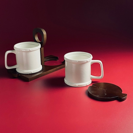 235-077 Набор из 2 кружек 310мл с блюдцами на подставке TROPICAL в под.уп.(х12)Фарфор (арт. 235-077)