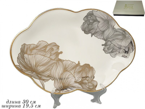 Коллекция посуды МИЛЛЕНИУМ выполнена из фарфора, Оригинальная дизайнерская форма в виде распустившегося цветка, с тонким двухцветным цветочным декором в золоте и в серебре. Коллекция состоит из сервизов и отдельных предметов.