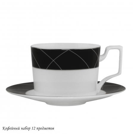 Коллекция PANDORA изготовлена из тонкого костяного фарфора белоснежного цвета. Бортик покрыт черной глазурью с тонкой серебряной сеткой и обводкой. Классическая линейка предметов сервировки: блюда, тарелки, салатники, сервизы и штучные предметы