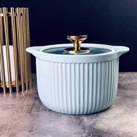 Кастрюля изготовлена из жаропрочной керамики с матовой глазурью, со стеклянной крышкой