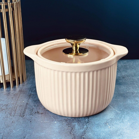 Кастрюля изготовлена из жаропрочной керамики с матовой глазурью, со стеклянной крышкой