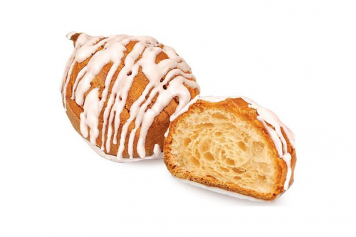 Состав продукта: Мука пшеничная хлебопекарная в/с, вода питьевая, яйца куриные пищевые, жир кондитерский (рафинированные дезодорированные растительные масла в натуральном и модифицированном виде- пальмового масла и его фракций, подсолнечного, соевого; эмульгаторы моно и диглицериды жирных кислот, ароматизатор, краситель бета-каротин, антиокислители- аскорбиновая кислота, концентрат смеси токоферолов), сахар-песок, глазурь белая (сахар, заменитель масла какао лауринового типа (рафинированное, дезодорированое пальмоядровое масло, эмульгатор сорбитан тристеарат, лецитин), сыворотка молочная сухая, эмульгаторы- соевый/рапсовый лецитин, Е476; ароматизатор), соль пищевая, разрыхлитель- гидрокарбонат натрия, консерванты- Е200, Е282; регулятор кислотности Е270, влагоудерживающий агент Е422. Возможны следовые количества кунжута. Не содержит ГМО.