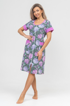 Женский халатик на молнии самая распространенная и универсальная одежда для домашнего отдыха и хозяйственных хлопот. После трудного рабочего дня, приходя домой, первым делом хочется переодеться. И данная модель это идеальный вариант среди представительниц прекрасной половины человечества. Модель выполнена из 100% хлопчатобумажной ткани. Халат так же дополняет яркая отделка по рукавам и карманам. А пояс на линии талии поможет легко смоделировать женственный силуэт и при этом Вы будете чувствовать себя легко и непринуждённо. Данная модель прекрасно подойдёт для дома, дачи и отдыха, создавая по-настоящему яркий образ и хорошее настроение! Рост модели на фото 165см.