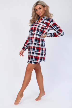Женский халат-рубашка на пуговицах чуть выше колена с длинным рукавом на манжете. Разрез рукава окантован. На груди с левой стороны накладной карман с отделкой из канта. Воротник фигурный рубашечного типа, обработан кантом. Низ рубашки закруглен и образует небольшие разрезы по бокам. Модель выполнена из высококачественного 100% хлопка, на ощупь ткань напоминает фланель, что создает комфорт и уют при носке. Модный дизайн. Можно носить дома как халат-рубашку или на улице как платье. Подойдет на любую фигуру, скроет недостатки. Широкий размерный ряд. Отличный подарок любимым!