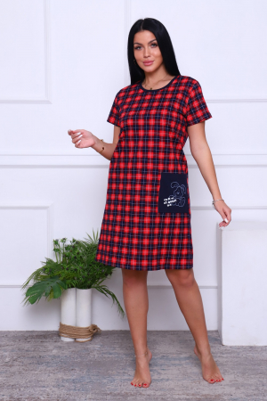 Туника женская в клетку с актуальным новогодним принтом заяц на кармашке. Милая уютная домашняя одежда подарит радость Вам и вашим близким! Материал - кулирка, 100% хлопок.